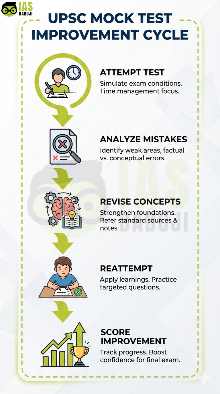 Whether it is Prelims MCQ accuracy or Mains answer structuring, mock tests bridge the gap between knowledge and performance. This article explains why mock tests are crucial, how to analyze them effectively, and how to use them strategically to improve scores and rank.